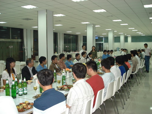 晚宴在輕快的音樂聲中舉行,總經(jīng)理孫龍平因公務(wù)無法前來,專門打電話表達(dá)了對(duì)員工的節(jié)日問候。公司董事長(zhǎng)井上先生、常務(wù)副總鈴木先生先后致辭,表達(dá)了對(duì)員工節(jié)日的祝賀,同時(shí)談到了八月十五這一天,在日本也有全家人賞月的傳統(tǒng),故鄉(xiāng)的明月是所有游子魂?duì)繅?mèng)繞的情。自助式晚宴進(jìn)行得自由而輕松,員工之間頻頻舉杯,共敘友誼,并無多愁善感;人力資源部姜部長(zhǎng)帶頭向員工一一祝酒,對(duì)員工的鼓勵(lì)溢于言表,整個(gè)餐廳觥籌交錯(cuò),其樂融融。