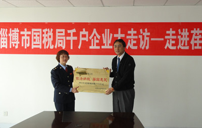 會(huì)上,舉行了授牌儀式,志賀進(jìn)總經(jīng)理從婁局長(zhǎng)手中接過(guò)了淄博市國(guó)稅局頒發(fā)的 “依法納稅 強(qiáng)國(guó)惠民” 的牌匾。
