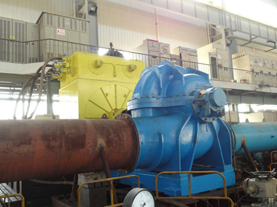 1000cm×900cm的大型臥式雙吸離心泵測(cè)試現(xiàn)場(chǎng)