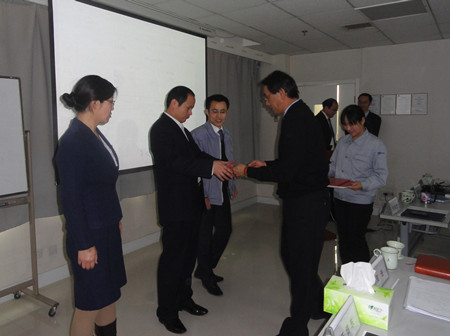 總經(jīng)理志賀進(jìn)先生在會(huì)上講話(huà),并為在2011年度營(yíng)銷(xiāo)工作中業(yè)績(jī)突出的3名同志:高文旭、周潔、喬法彬進(jìn)行了頒獎(jiǎng)。