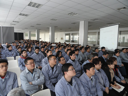 王總在講話中用詳實的數(shù)字,明晰的圖表,做了細(xì)致地分析和總結(jié)。對2012年之前的工作做了主觀和客觀的原因分析。在2013年的工作總結(jié)中,王總用成績和不足來概括:在2013的工作中,營業(yè)工作取得比較突出的成績,取得了訂單創(chuàng)新高;百萬機組項目100%容量訂單的簽訂等亮點,特別可喜的是,在EPC印尼項目中,鍋爐給水泵、循環(huán)水泵、凝結(jié)水泵一次性簽單,這在公司歷史上乃至行業(yè)中都是很少見的。在生產(chǎn)方面:發(fā)貨臺數(shù)創(chuàng)公司歷史之最;車間5S管理取得良好進(jìn)展;產(chǎn)品不合格率得到有效控制。在其他方面:公司采購引入比價采購環(huán)節(jié),降低采購成本;C型泵的改善方面,提高采購批量,降低采購價格,滿足生產(chǎn)各環(huán)節(jié)的需要。不足之處:營業(yè)方面行業(yè)訂單結(jié)構(gòu)不平衡;生產(chǎn)環(huán)節(jié)中生產(chǎn)秩序的保證、外購件的合格率以及設(shè)計出圖的時間有待改善;ERP環(huán)節(jié)錄入數(shù)據(jù)的及時性、準(zhǔn)確性方面還有待提高等等。